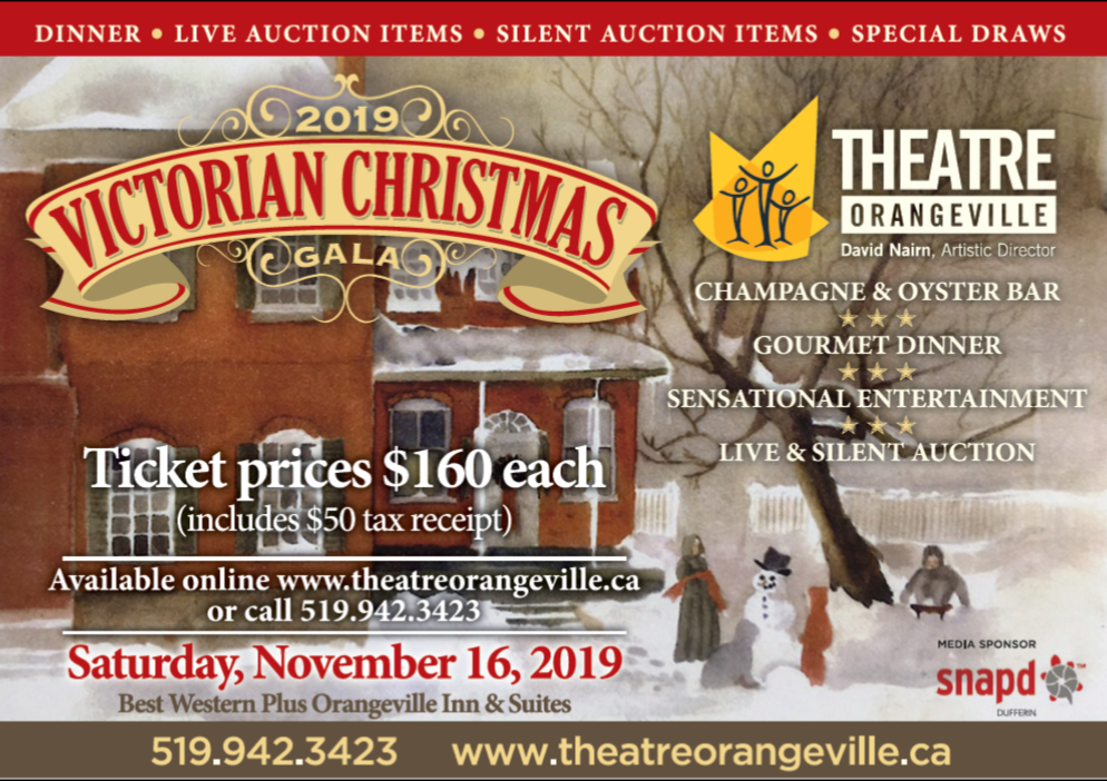 Victorian Christmas is the primary fundraising event for Theatre Orangeville. Funds raised are used to support our fully professional programming to an enthusiastic and growing audience. Our school and youth programs attract young people of all ages who participate in drama, choirs and theatre experiences.