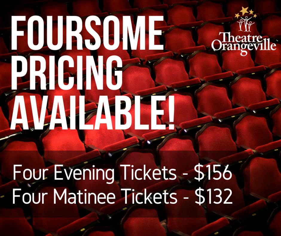 To book your Foursome Pricing package, call the Theatre Orangeville Box