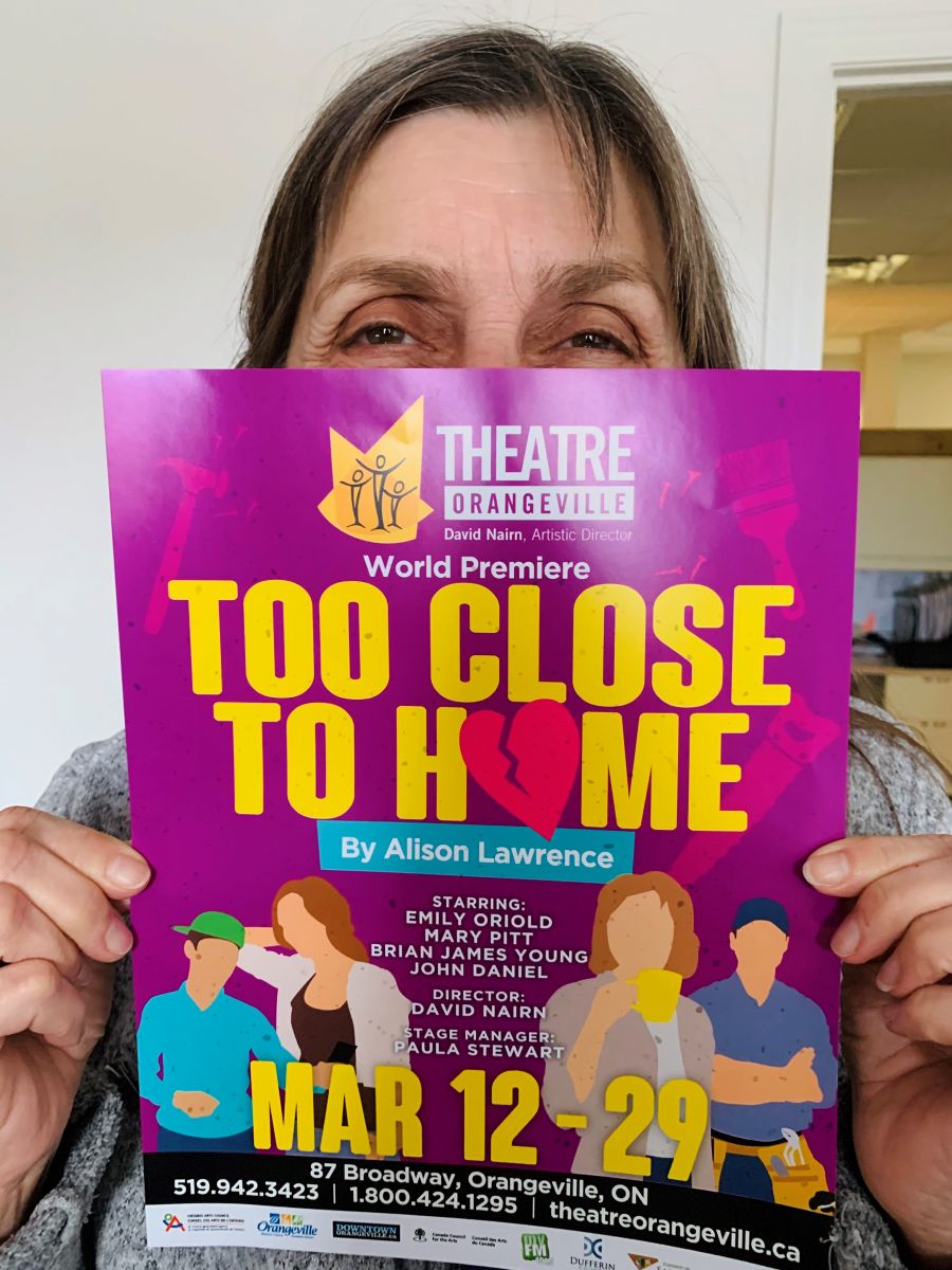 This is the reality that Alison explores in her new play, Too Close to Home, premiering on the Theatre Orangeville stage March 12 to 29. At times funny and touching, this is a play that lives up to its name. When reality hits us too close to home, it’s because it rings with truth and validates who we are as women. Call the box office now!